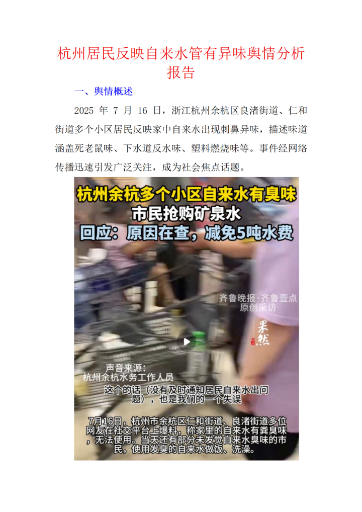 正规股票券商官网杭州居民反映自来水管有异味舆情分析报告